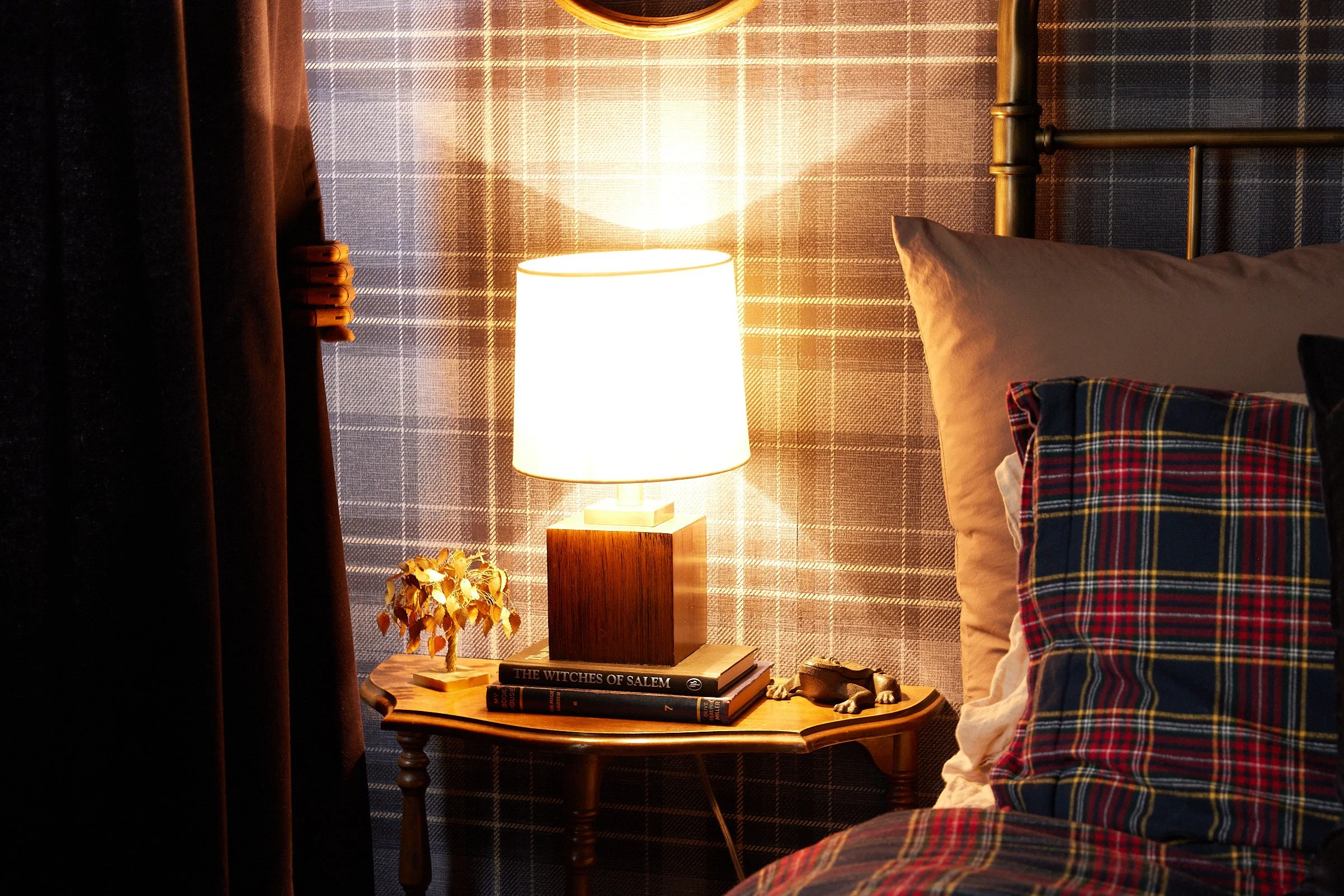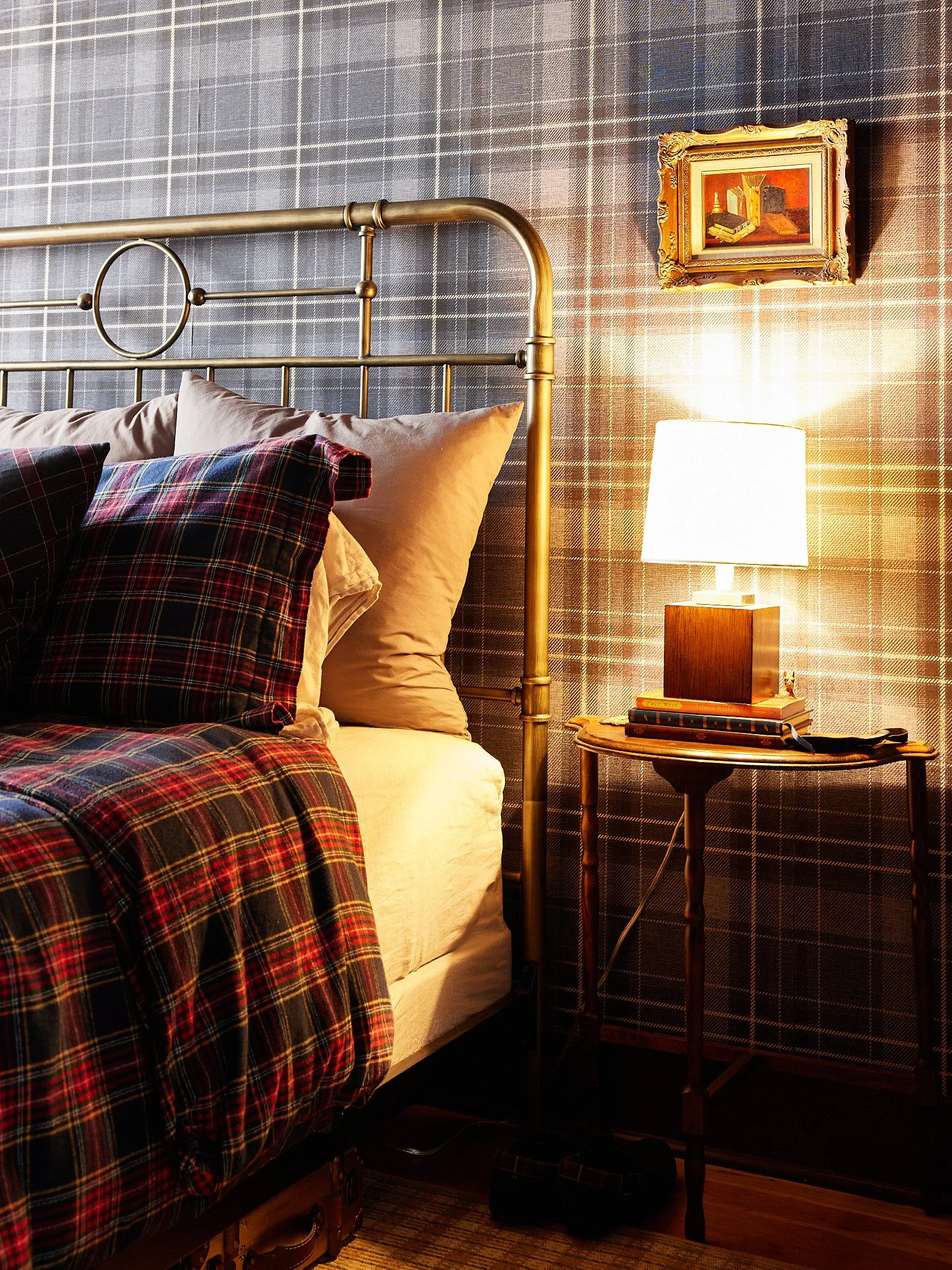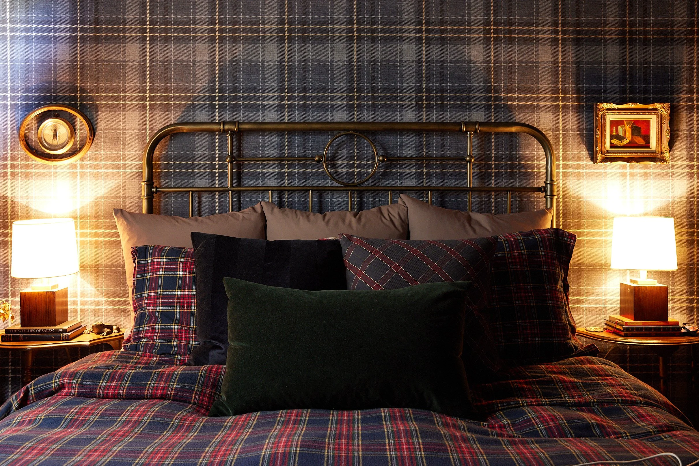 To blend our tastes harmoniously, we opted for a fusion of deep, rich colors and plaids that bridge the gap between preppy and punk influences. And I admit the bedroom leans more preppy, but the rest of the house is another story and I will share more of that later if you’re interested.